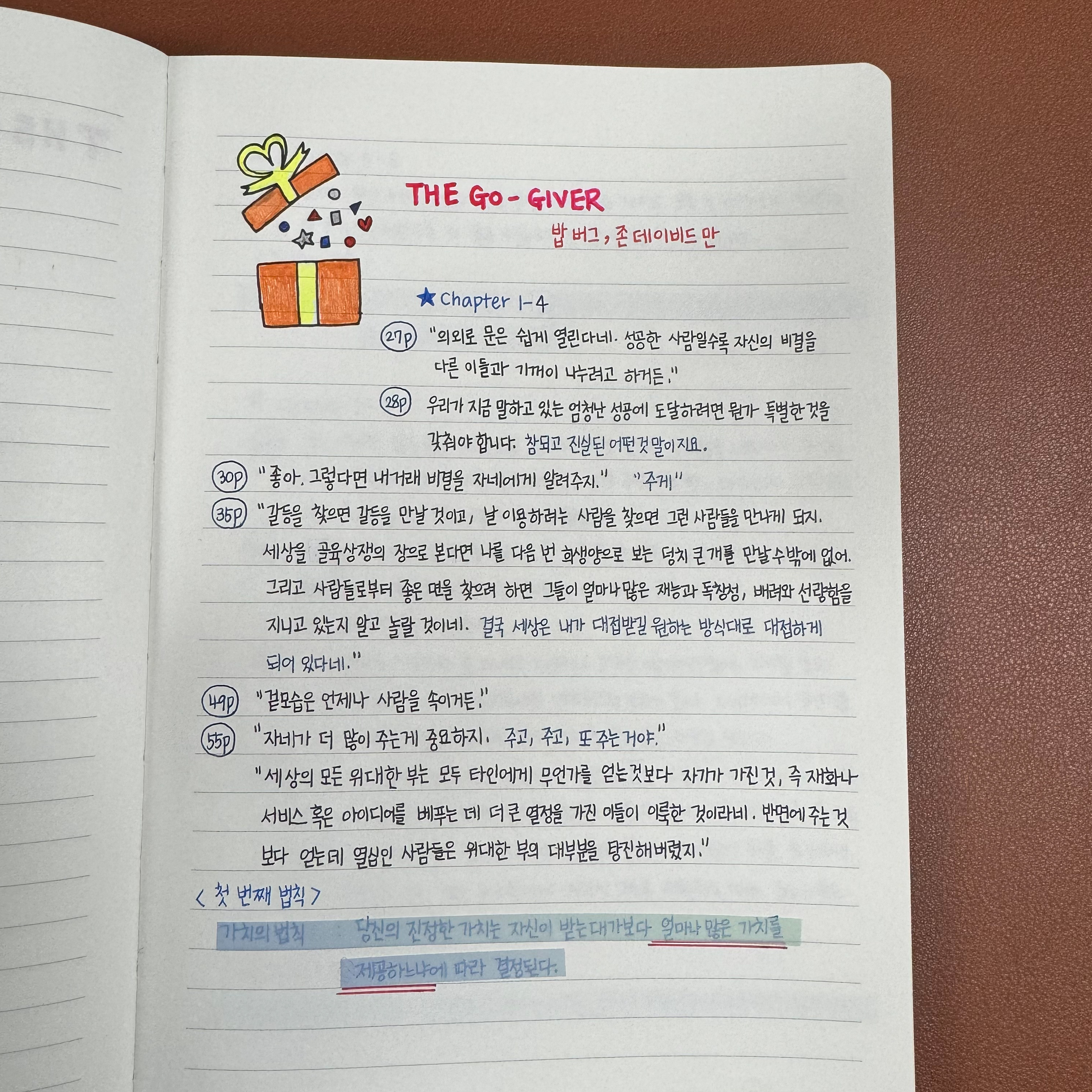 1. 가치의 법칙 : 당신의 진정한 가치는 자신이 받는 대가보다 얼마나 많은 가치를 제공하느냐에 따라 결정된다.