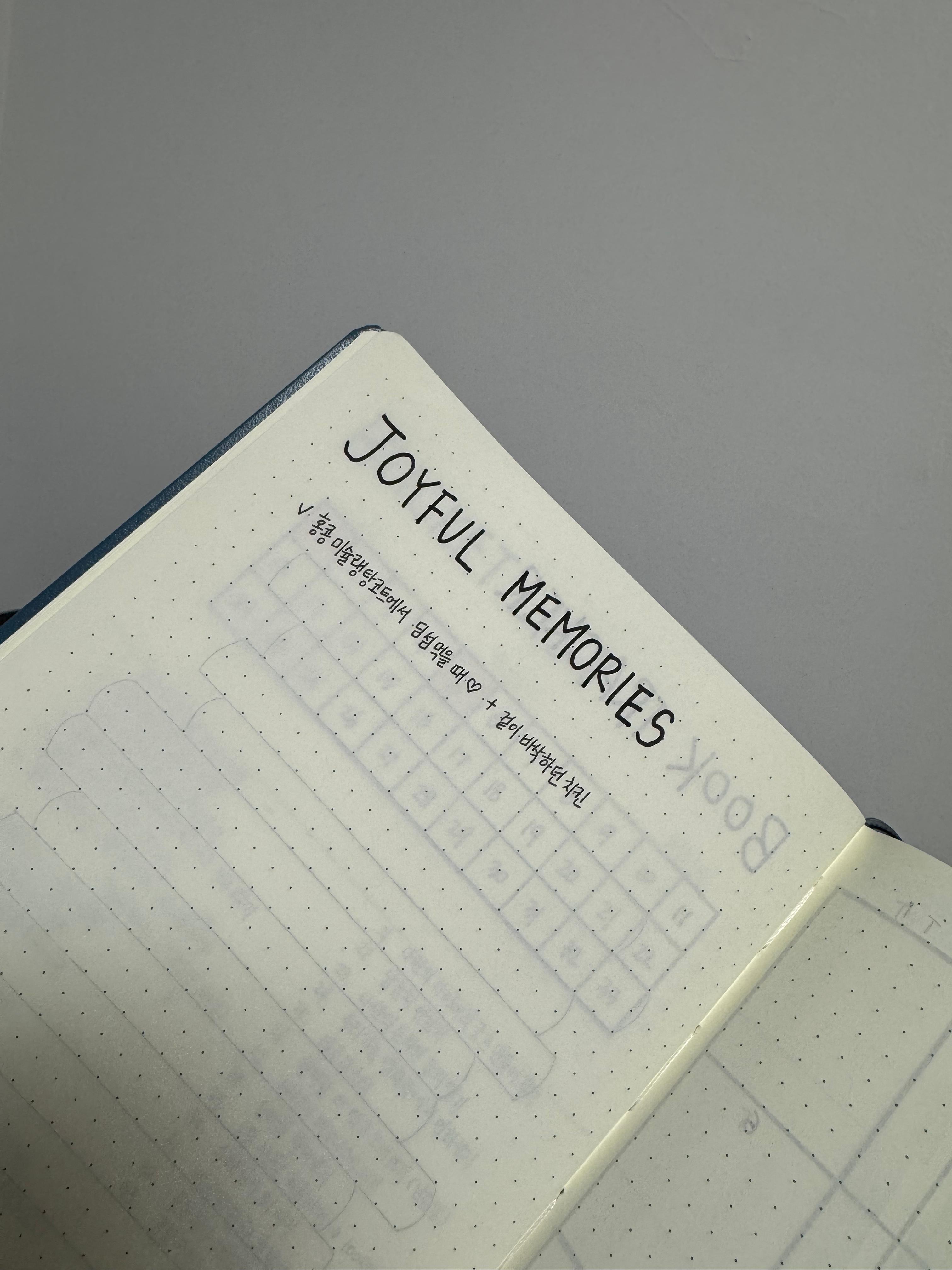 사실 올 초에 불렛저널을 시작해서 열심히 써왔지만, 바쁘다는 핑계로 두세 달 정도는 띄엄띄엄 쓰게 되었다.오랜만에 예전에 썼던 기록들을 다시 꺼내 읽어보니, 기록하지 않았다면 잊었을 사건들, 그리고 그 사건을 중심으로 했던 내 감정, 깨달음, 느낌들을 다시 만날 수 있었다. 그때는 그저 생각나는대로 끄적였던 것들이 지금 돌아보니 소중한 추억이 되어 있고, 그 감정을 적어내려가며 마음을 정리했던 시간들도 떠올랐다. 그리고 그런 과정을 통해 조금씩이지만 내가 성장하고 있다는 느낌이 들었다. 마침 오늘이 8월의 첫날. 다시 시작해보자 마음먹고, 불렛저널을 새롭게 셋팅했다!
