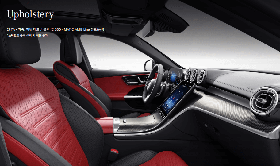 시트의 경우 블랙/파워레드 색상의 경우 AMG 라인에서만 유료 옵션으로 변경할 수 있습니다.
