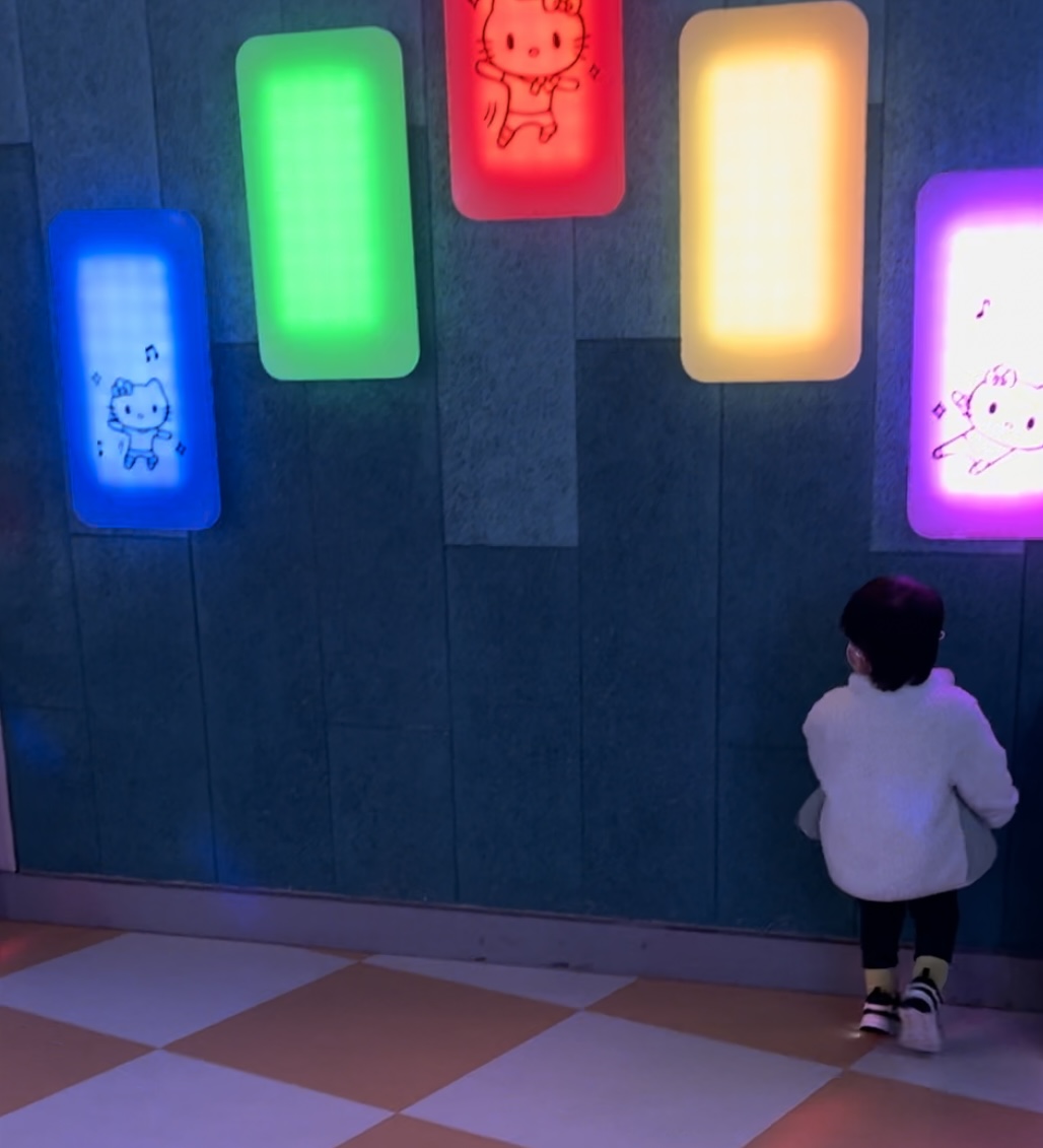 아이들이 체험할 수 있는 활동도 다양해요. 헬로키티버스를 타고 버스 밖 풍경을 연상시키는 영상을 보며 진짜 버스를 타고 여행하는 듯한 기분도 느껴볼 수 있고요. 불빛이 번쩍번쩍이는 다소 어두운 공간에서 신나는 음악에 맞춰서 노래를 듣고 춤을 추며 신나게 뛰어다닐 공간도 있어요. 글쓰는 지금도 흘러나왔던 그 노래를 흥얼거리게 되네요 ㅎㅎㅎ