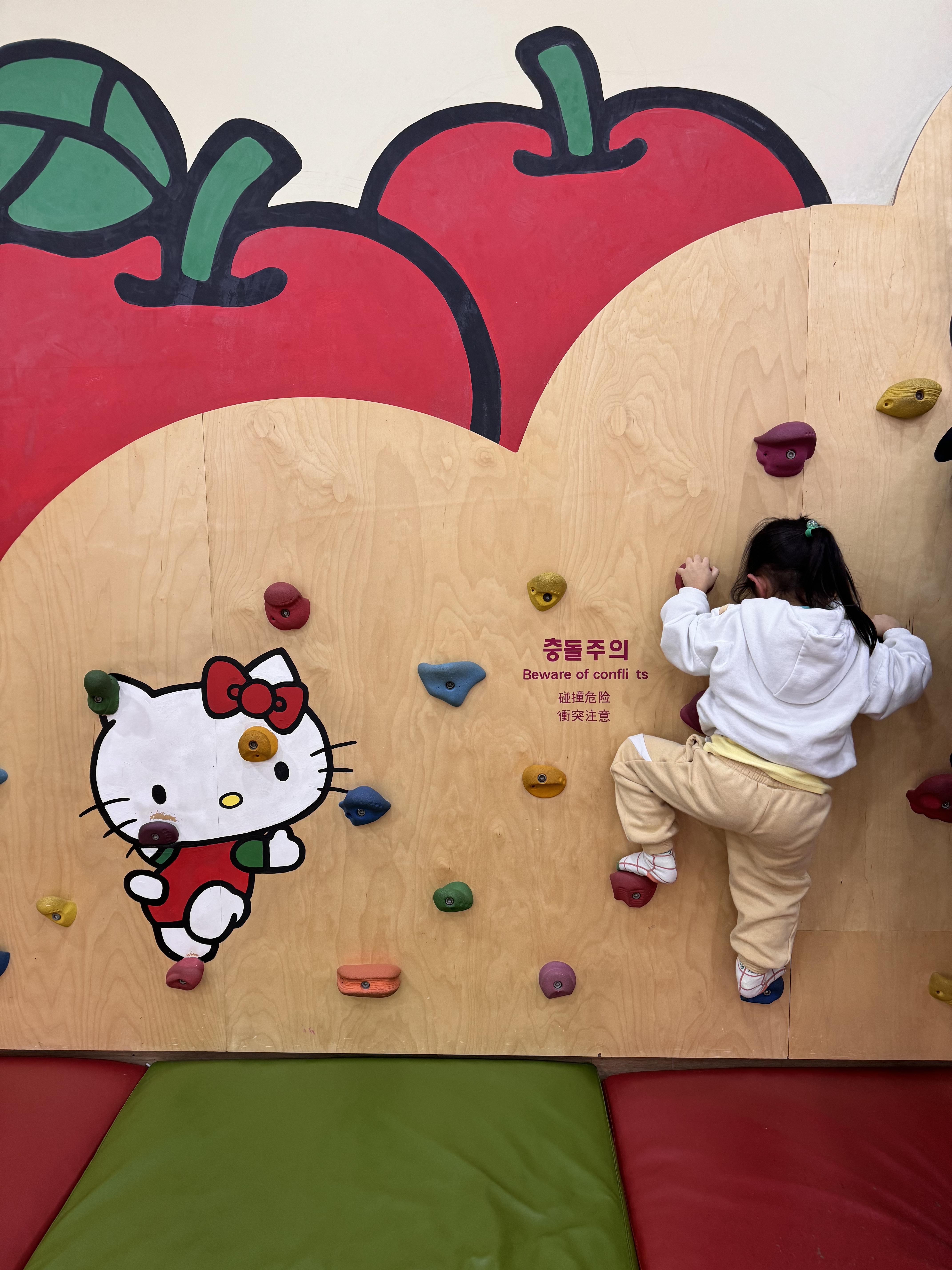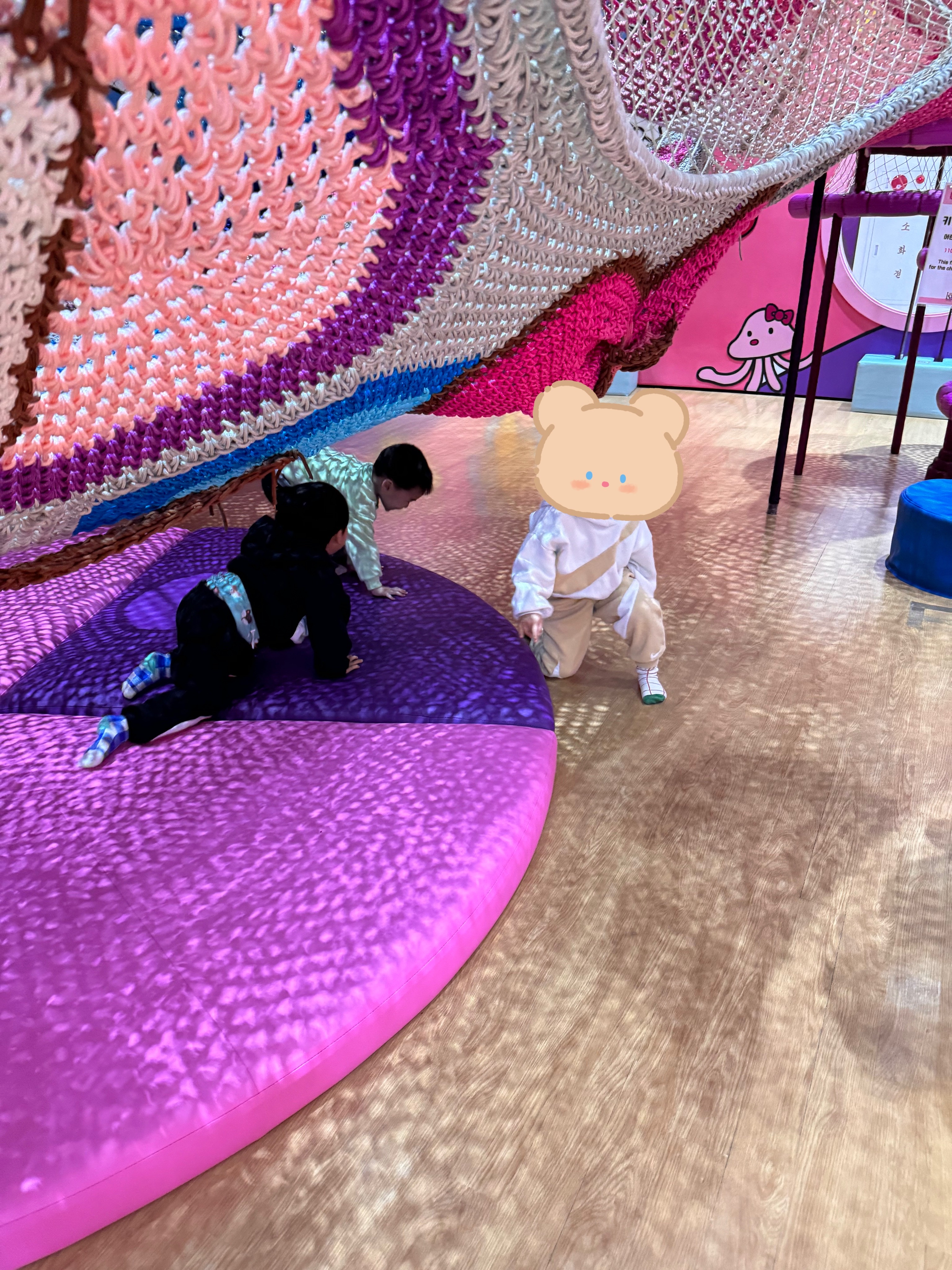 아이들이 신체활동을 할 수 있는 놀이 공간도 있어요. 에어포켓과 암벽타기 등 소소한 놀이 공간들이 있어요. 단, 에어포켓은 키가 110cm 이하 되는 아이들만 할 수 있어요. 놀이 공간들이 아주 많지는 않지만 만3세, 만4세인 저희 집 아가들이 즐기기에 충분했답니다.